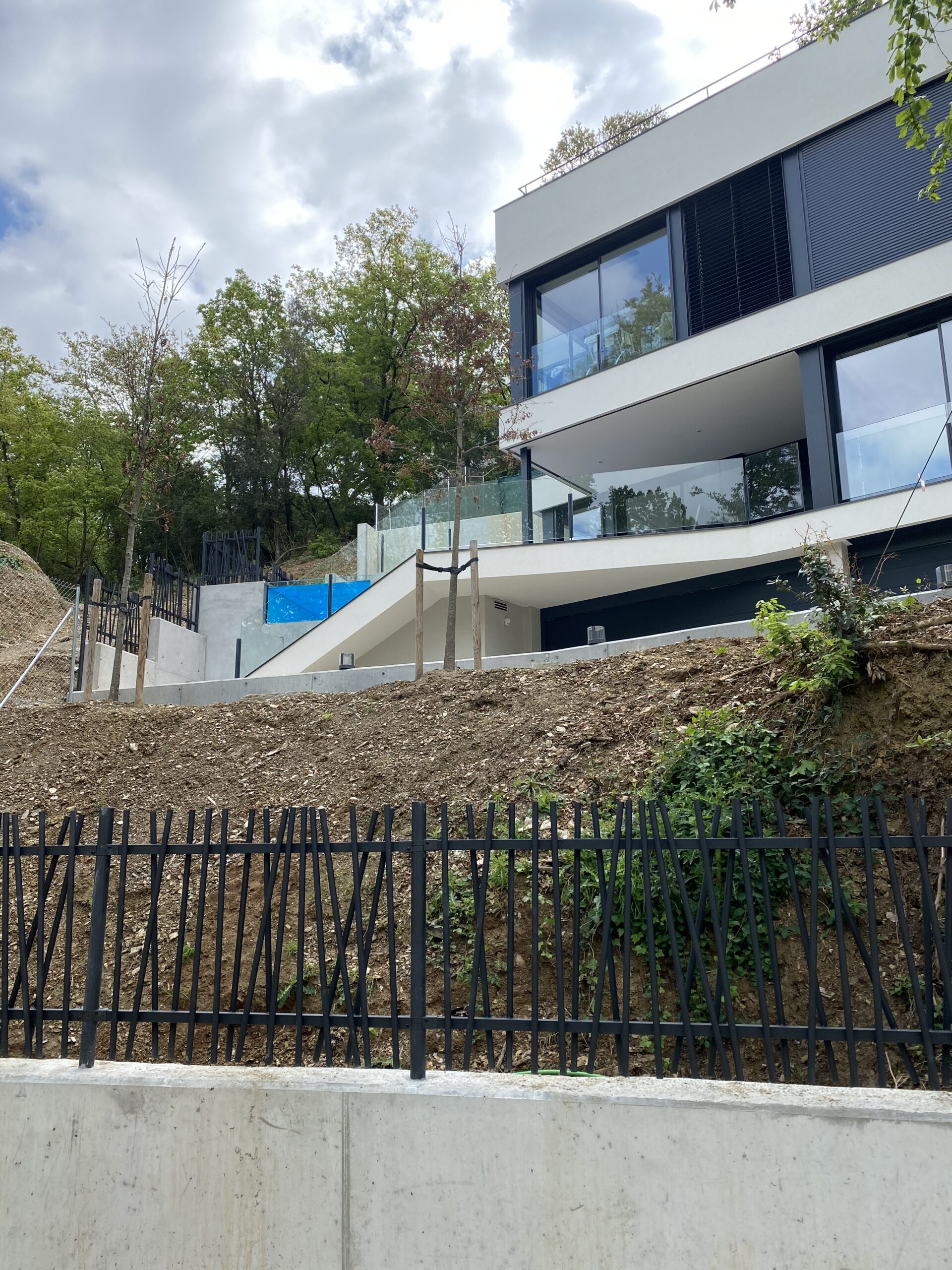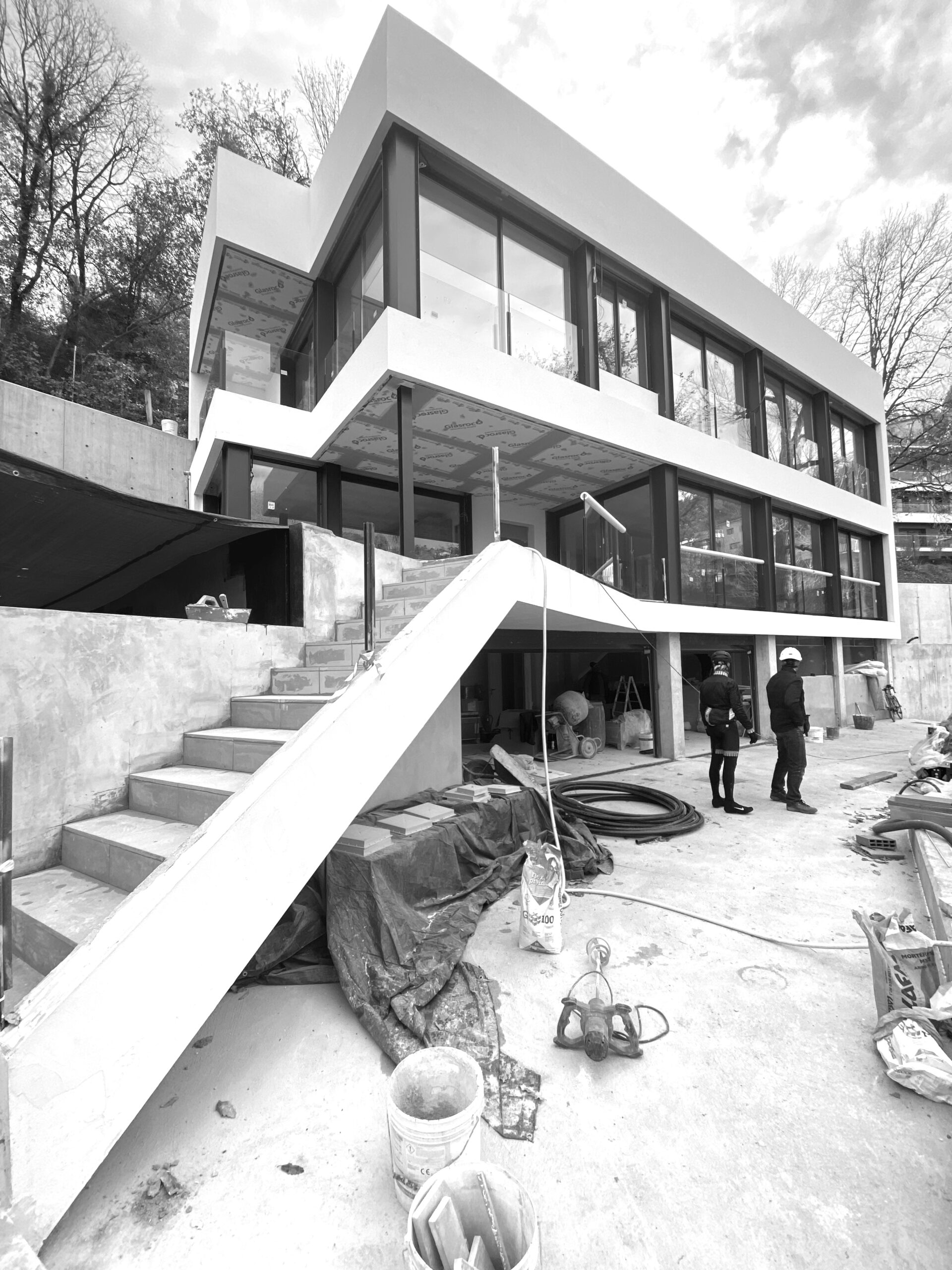 La vivienda se caracteriza por la singularidad de la parcela. Se trata de un solar muy afortunado a la vez que complicado. Tiene unas vistas espectaculares al parque natural protegido de la sierra de Collserola, y una pendiente de terreno de casi un 50%.