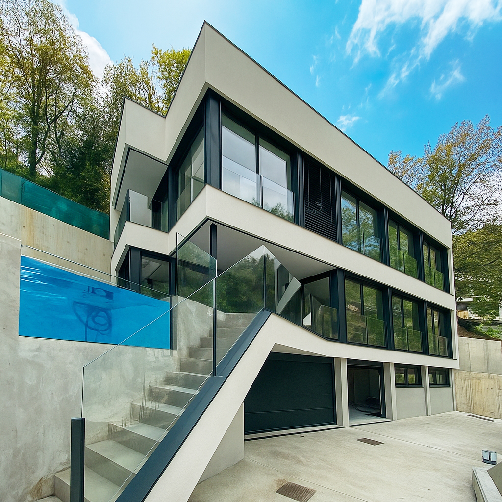 La vivienda se levanta sobre una parcela tan singular como desafiante: un solar privilegiado que combina la dificultad de una pendiente cercana al 50% con el privilegio de unas vistas inigualables al Parque Natural protegido de la Sierra de Collserola. Un entorno único que convierte cada mirada en un auténtico espectáculo.
